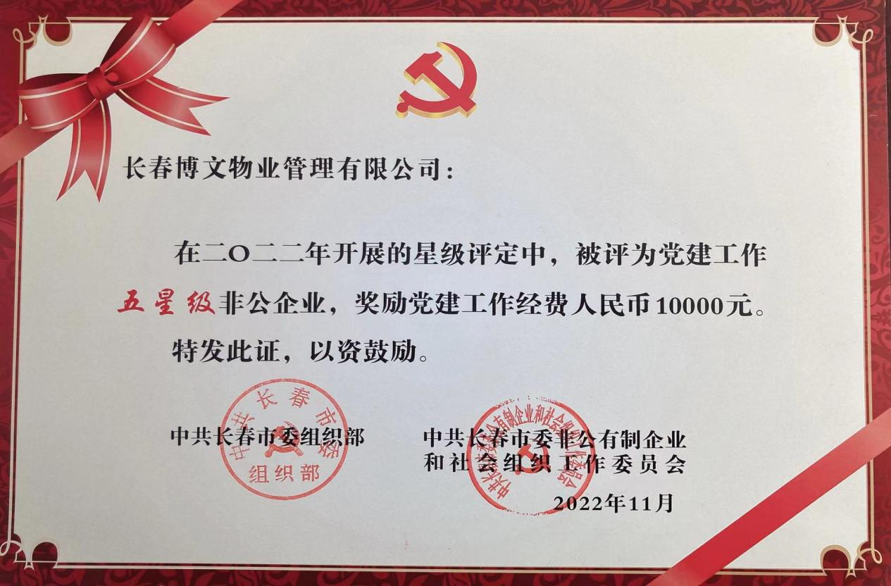 黨建工作星級非公企業(yè)(5星)