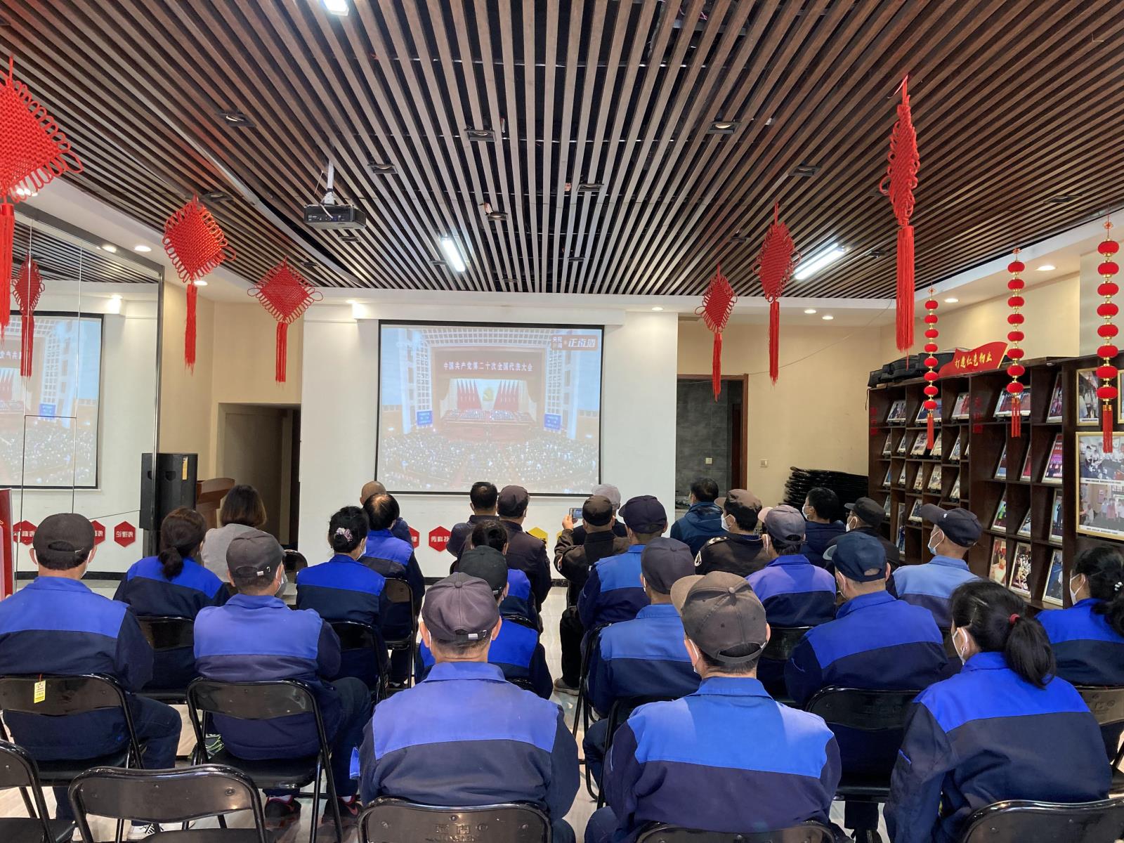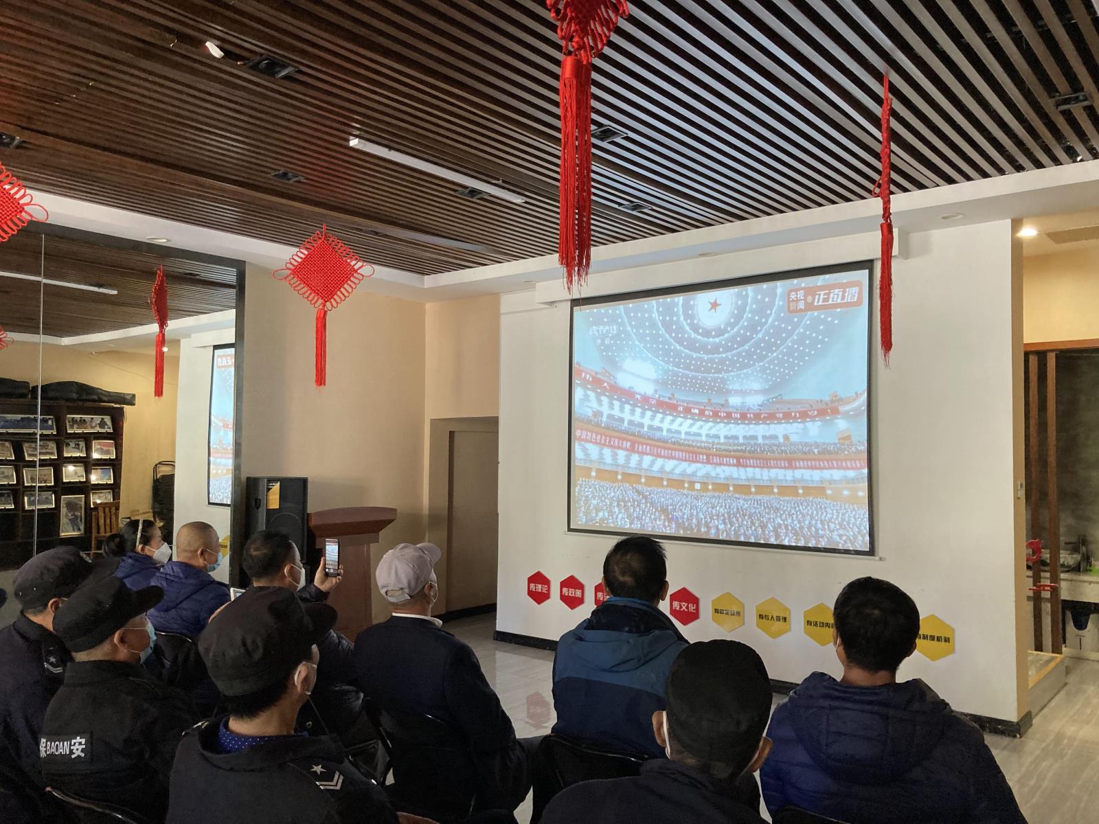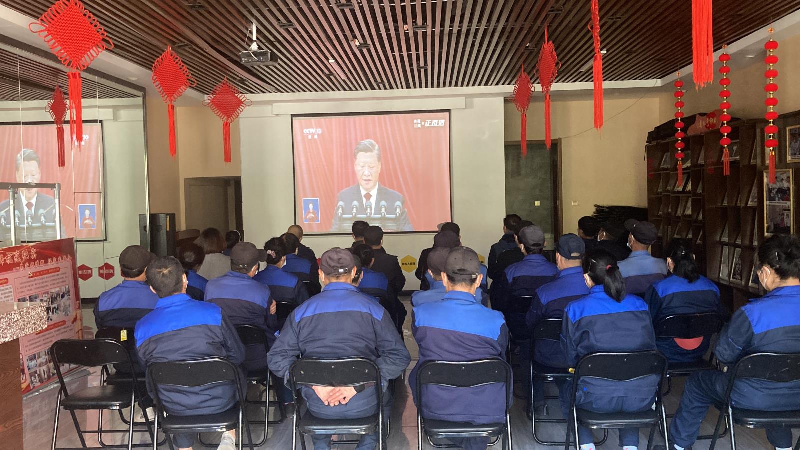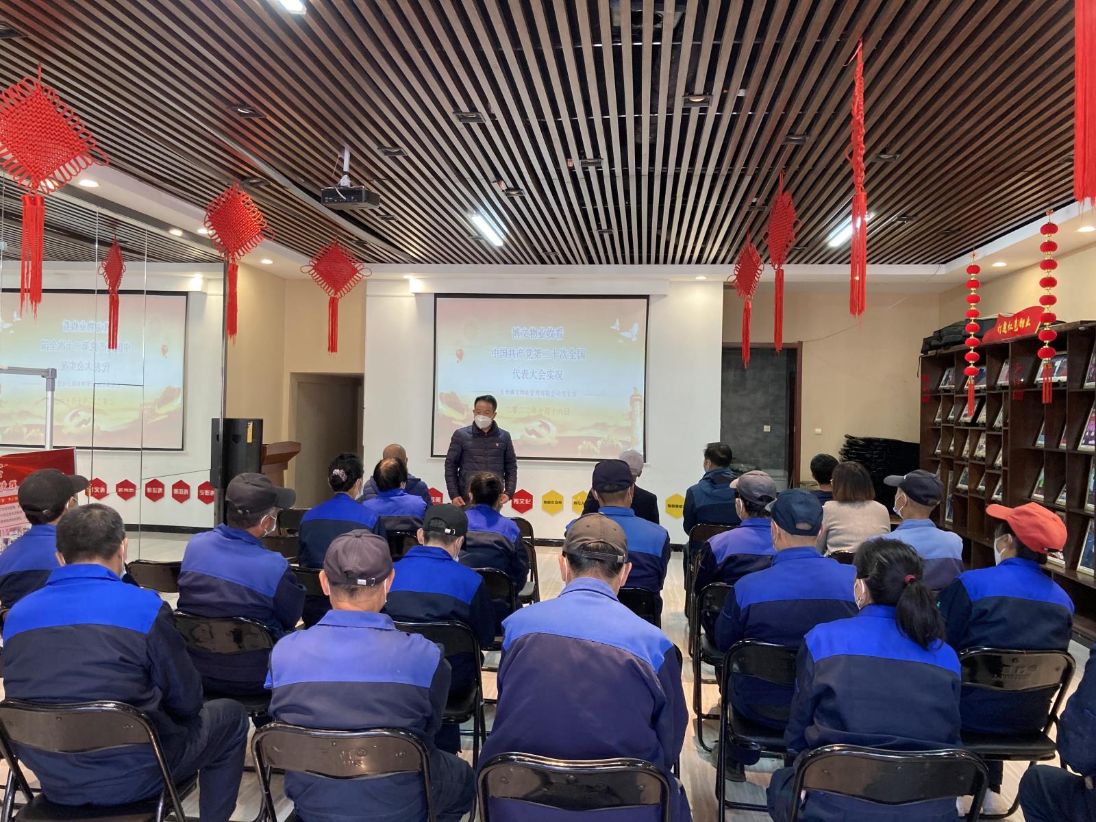 16日上午10時,長春博文物業(yè)管理有限公司黨支部書記遲貴、副書記巴特爾組織所有黨員及員工在紅驛舫黨群服務站觀看中國共產(chǎn)黨第二十次全國代表大會實況直播。